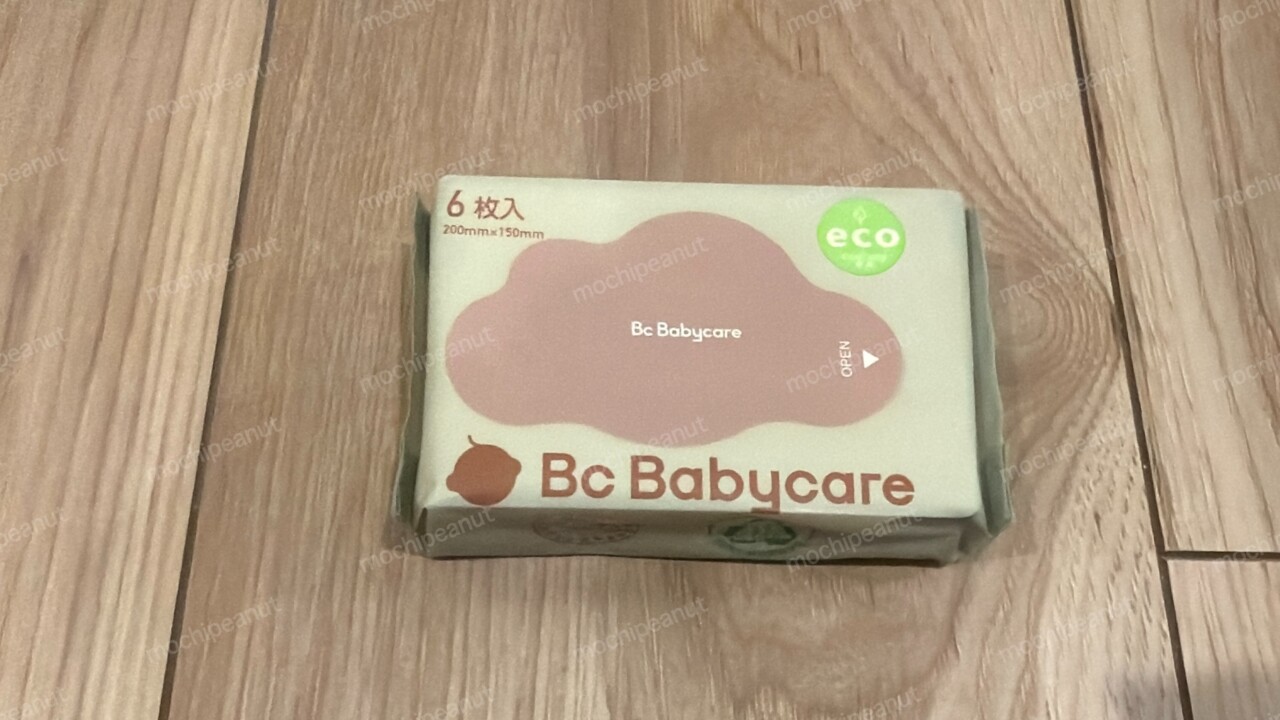 bc babycareのおしりふき。6枚入りの持ち運びサイズです。