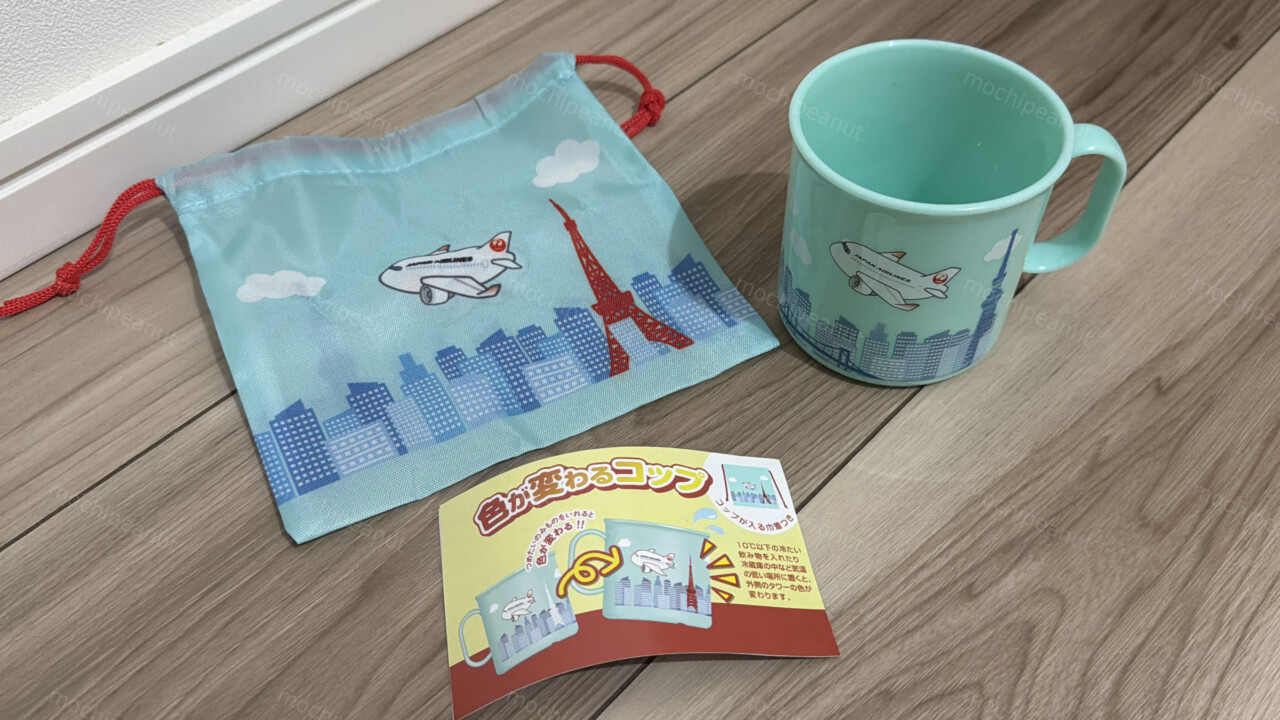 子供用のコップと、小さな飛行機の模型!行きと帰りでひとつずついただきました。