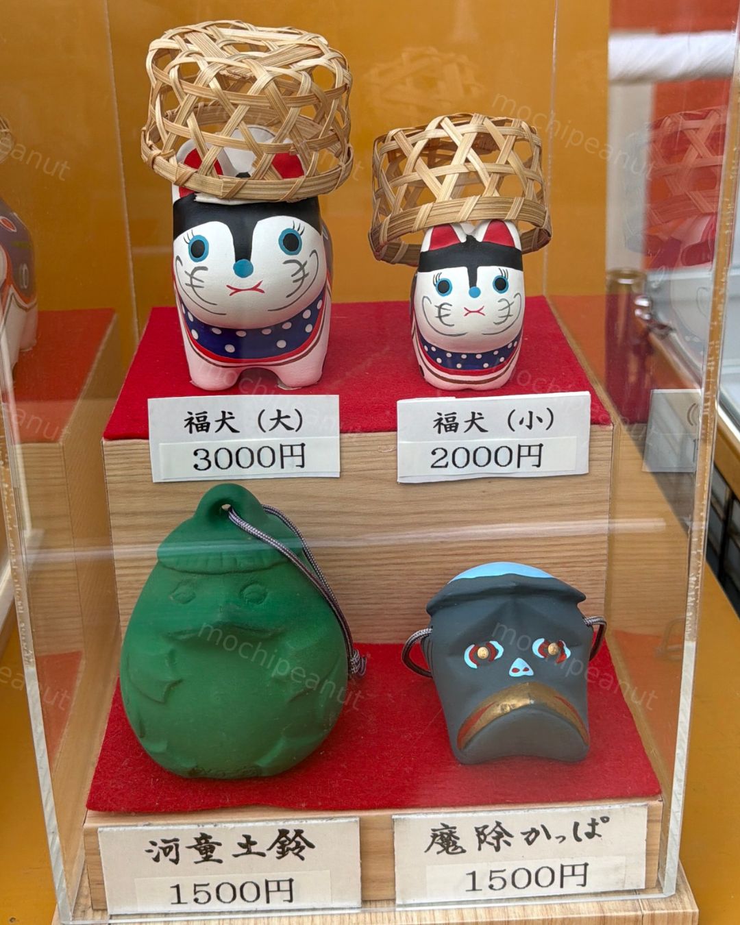 水天宮らしさがあったのはこっちの置き物たち。福犬が可愛かったけど、そこそこ大きくて値段もしたので買わなかったです。